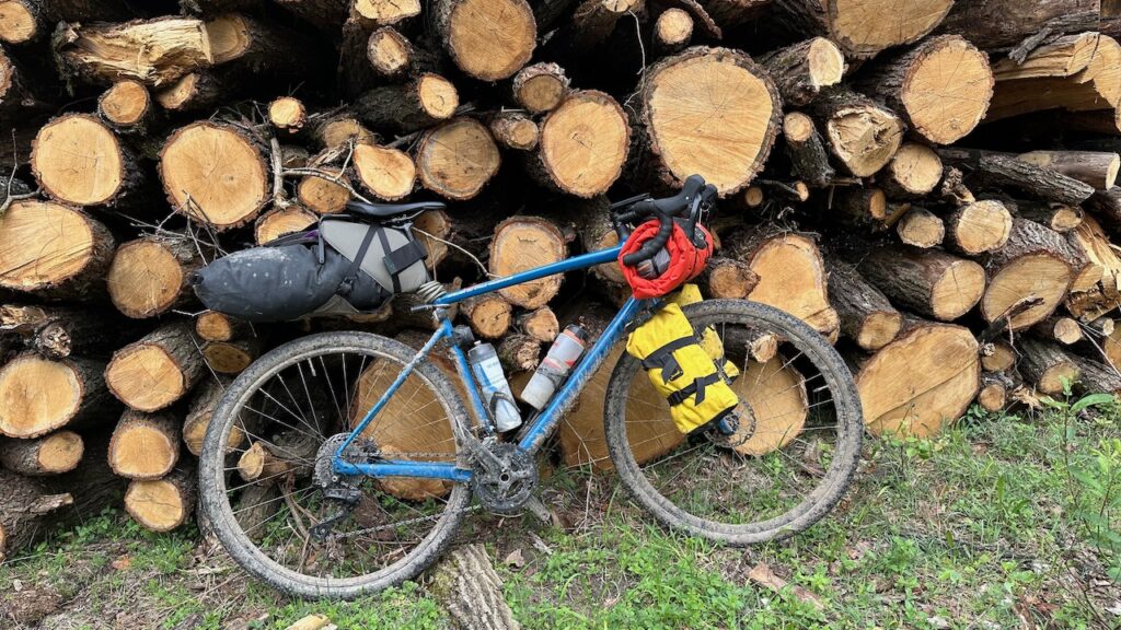Mes tous premiers voyages à vélo ont été fait fait sur des VTT, tout rigide puis suspendus. Puis j’ai utilisé mon vélo de route, un Décathlon, en aluminium avec fourche et triangle en carbone. Comme il n’était pas adapté pour y installer des porte-bagages, j’ai utilisé une remorque mono-roue Extrawheel, une marque polonaise. C’est la remorque la plus légère du marché. Elle se clipse juste sur l’axe de roue arrière et on peut y installer 2 sacoches. J’ai ainsi fait une grande partie de mon tour de France et la traversée des USA. Ensuite, dès que les vélos gravel sont apparus sur le marché, j’ai su que c’était le type de vélo adapté à mes besoins. Le premier était un Specialized Sequoia en acier mais suite à la casse du cadre, je l’ai remplacé par un Diverge Elite E5, en aluminium avec freins hydraulique. Il me permet de faire aussi bien des voyages sur route avec sacoches ou du vrai gravel en bikepacking en ne changeant que les pneus. Il me sert aussi pour mes déplacements en ville et pour du vélotaf. Dernièrement, j’ai acheté un vélo de route Origine Axxome GTO, en carbone. Il est destiné à des sorties sur route et à des courts voyages sur route ou bonnes pistes en bikepacking.