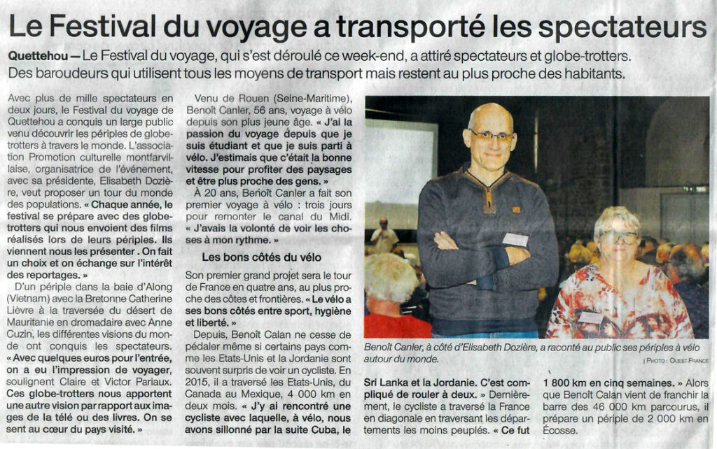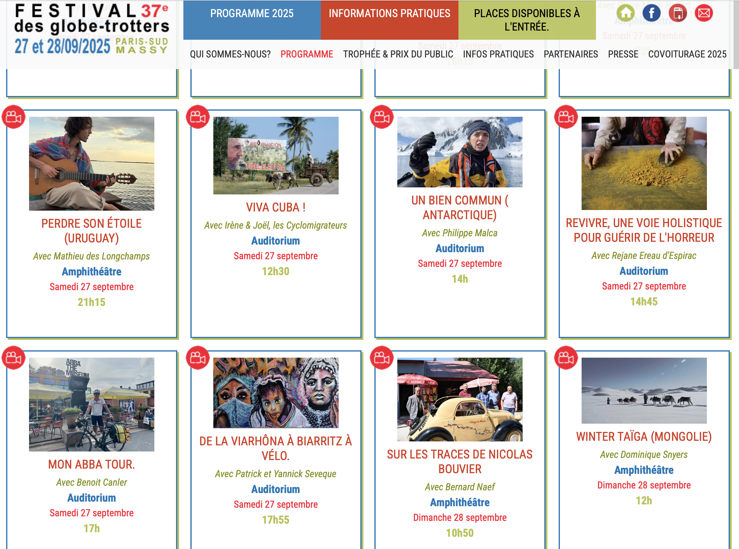 Mon film a été présenté au Festival des voyageurs de Montfarville le 2024 le 16/11/24, au Festival ABM Rouen du 29/03/25 et au Festival des Globe-Trotters de Massy le 27/09/25