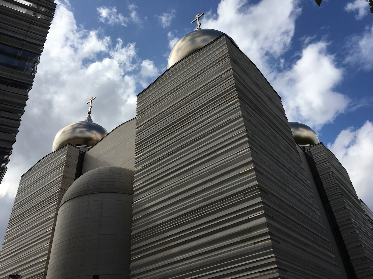 19/ La cathédrale de la Ste Trinité de Paris est une cathédrale orthodoxe de style byzantin et russe, en matériau composite recouvert d’or mat. Inaugurée en octobre 2016