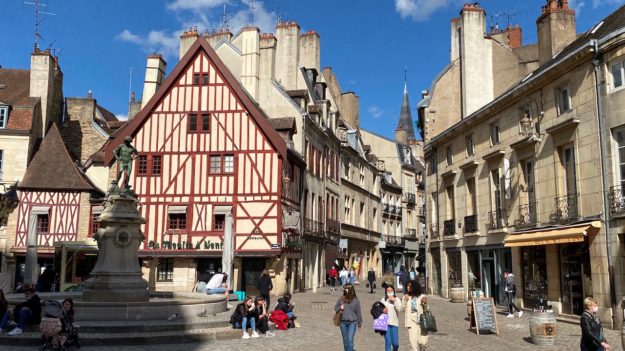 07/05/21 : De Rouen à Dijon en train. (Rouen 10h13– Paris St Lazare 11h48, Paris Bercy 13h33 – Dijon 16h27). Traversée de Paris à vélo. Pique-nique dans les jardins de Bercy. Visite rapide de Dijon à vélo. Nuit en warmshowers chez Barthélémy et ses 2 enfants. Sa femme était absente.