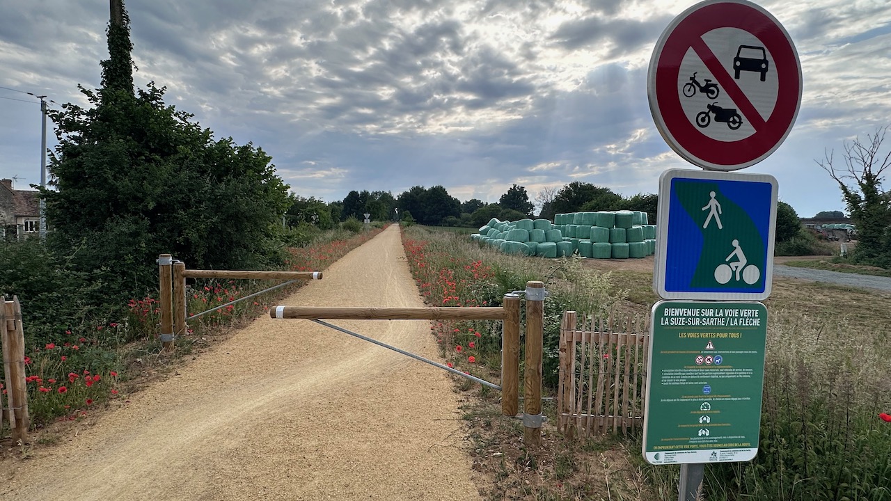 Sur le Loir à vélo, j’ai eu quelques rares passages sur pistes gravillonnées. Sur la Véloscénie, la voie verte est en piste stabilisée. La plupart des types de vélo sont donc adaptés à ce parcours. Pas besoin de VTT mais éviter cependant des pneus trop fins et trop fragiles.