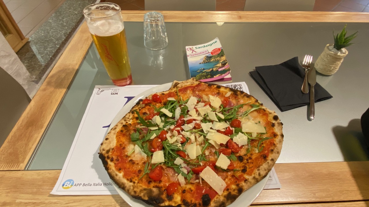 • Je passe ma dernière nuit au camping de Chia. Il était bien ouvert mais l’accueil était fermé à mon arrivée et à mon départ le lendemain. J’aurais pourtant volontiers payer ma nuitée. J’ai tout de même dépensé un peu d’argent en allant au resto du camping.