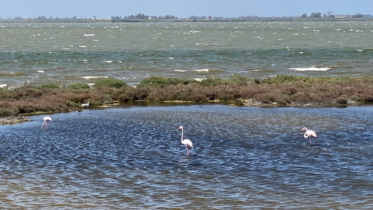 Beaucoup d’oiseaux, goélands, flamants roses en bord de mer et beaucoup oiseaux dans le maquis dont seul le randonneur ou le cycliste peut apprécier leur chant.