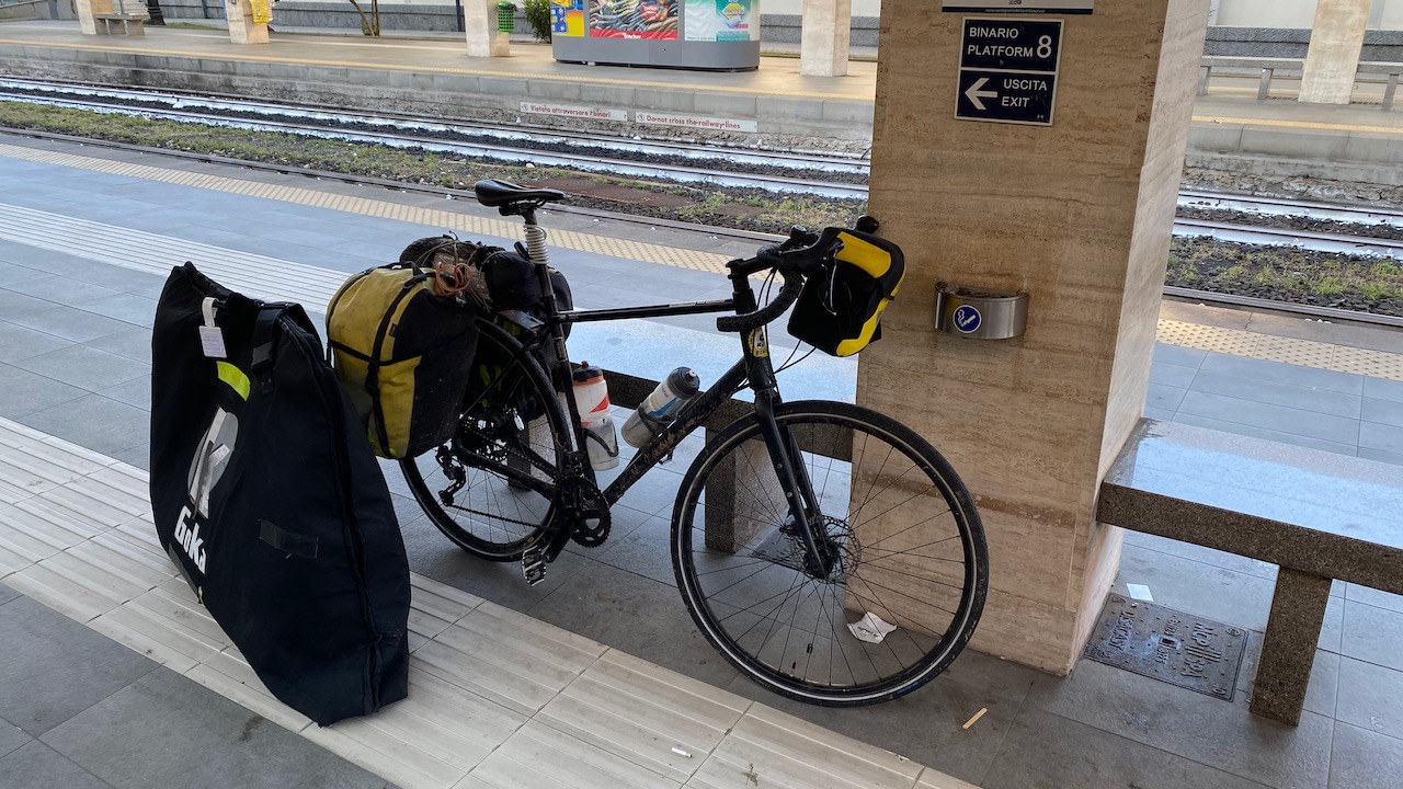 Pour ce nouveau voyage de printemps, j’ai choisi d’aller faire le tour de la Sardaigne. J’ai fait ce choix car, suite à mon voyage de l’an dernier en Sicile et du retard de 36h d’un de mes bagages, je pouvais bénéficier d’un voucher de 100€ valable 1 an. Je l’ai choisi aussi pour continuer un peu mon apprentissage de l’italien et enfin parce qu’il me semble faisable d’en faire le tour complet en seulement 2 semaines. Arrivée et départ se feront donc depuis l’aéroport de Cagliari, au sud de l’île et tour dans le sens anti-horaire pour être toujours côté mer. Ma seule organisation sera de réserver via Booking un logement pour les 2 premières nuits et pour la dernière au plus proche (600m) de la gare de Cagliari qui est directement connectée avec l’aéroport de Cagliari-Elmas en à peine 5mn de train. J’ai aussi réservé 15 jours de parking pour ma voiture chez Aerpark, solution pratique (transport en minibus vers le terminal CDG) et économique (68€ grâce à des réductions de fidélité). J’ai préparé 2 traces GPS faisant le tour de l’île, une pour vélo de route (1014km) et l’autre pour gravel (1040km). Je verrais bien sur place si les portions en gravel seront praticables pour mon vélo chargé. J’emporte un vieux Guide du routard de 2016/2017 pour mes visites et mes choix d’hébergements que je verrais sur place, au jour le jour.