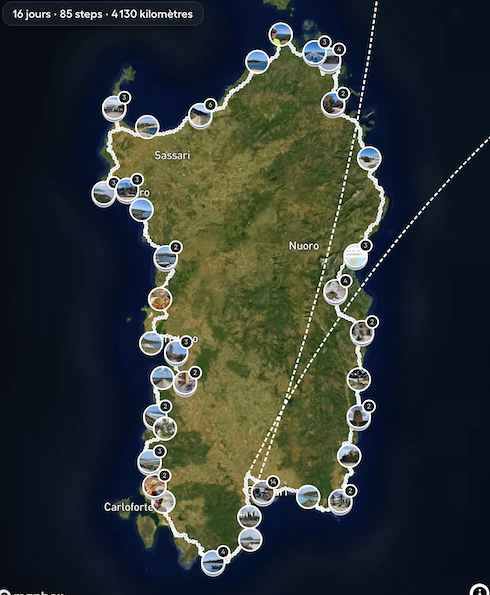 - 1166kms en 13 étapes, 1 jour à Cagliari.